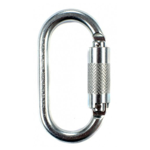 Steel quarter turn-locking karabiner, gate opening 16 mm